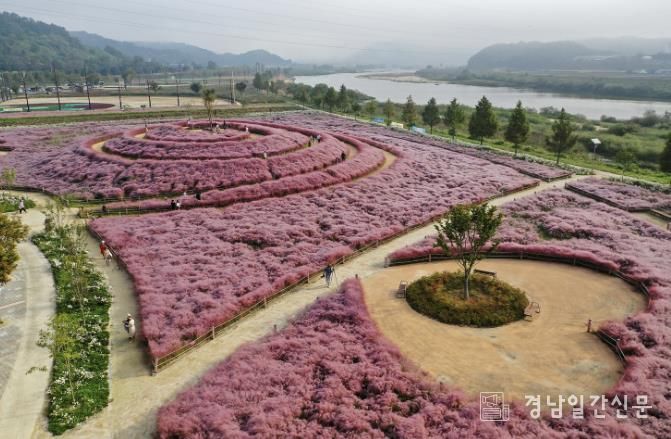 합천읍 황강변 신소양체육공원에서는 핑크빛 가을이 한창이다.