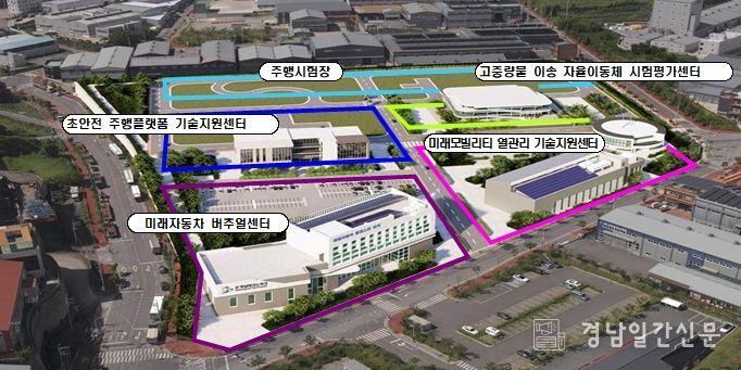 미래자동차 기술혁신단지는 총면적 2만7,850㎡(8,440평), 총사업비 870억 원 규모의 산업부 공모사업으로, 경남테크노파크가 수행기관으로 참여한다.