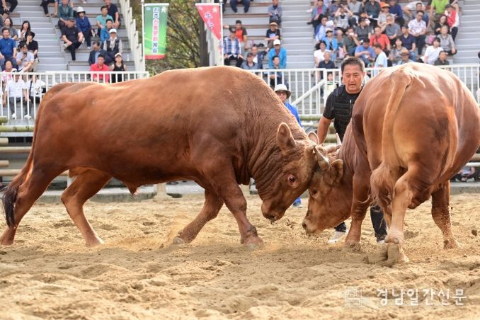 한편 진주소힘겨루기대회는 1884년경 진주성 안팎의 마을 간 소의 우열을 겨루면서 농경사회의 풍년과 안녕을 기원하는 공동체 놀이로 시작됐으며, 1897년 첫 대회를 시작해 올해 129회에 이르는 오랜 역사와 전통을 가지고 있다.
