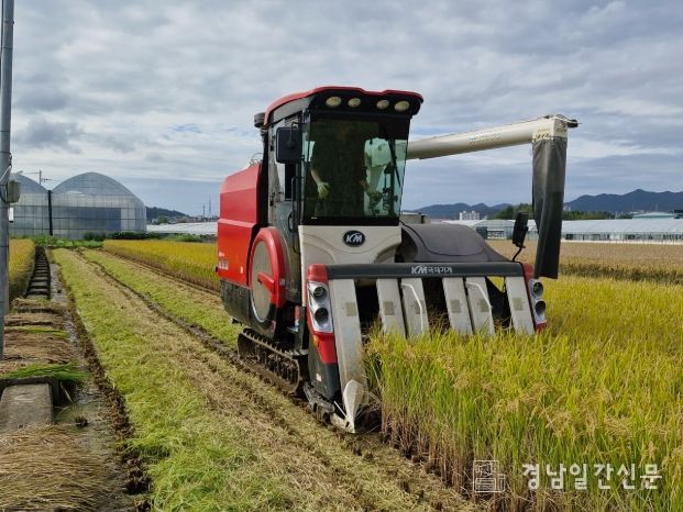 경남일간신문 | 고성군은 10월 15일 고성읍 죽계리 435-230에 위치한 벼 병해충 예찰포에서 벼를 수확했다고 밝혔다.