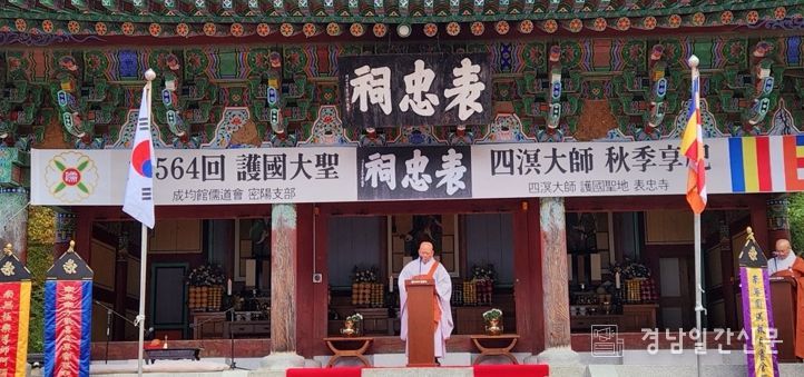 대한불교조계종 표충사(주지 진각) 주관으로 열린 사명대사 추계향사는 임진왜란 당시 승병을 이끌고 국난 극복에 앞장선 서산대사, 사명대사, 기허대사의 숭고한 충혼을 기리기 위한 국가 제향으로, 1744년(영조 20) 왕명으로 시작됐다. 특히 불교와 유교가 함께하는 합동 제향으로, 종교적·역사적 의미가 깊은 행사다.