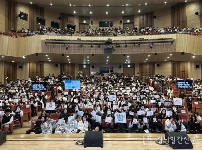 경남일간신문 | 경남 밀양시는 18일 밀양아리랑아트센터 대공연장에서 지역 내 중·고등학생 700여 명이 참여한 가운데 ‘2025년 청소년 진로지원을 위한 토크콘서트’를 성황리에 개최했다고 밝혔다.