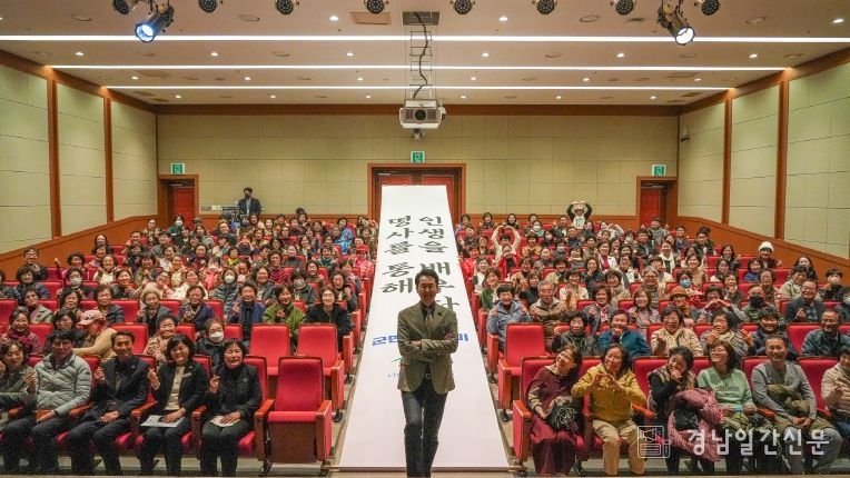 이번 강연은 “‘인생은 ○○이다’라는 문장의 빈칸에 어떤 단어를 넣고 싶은가요?”라는 질문으로 시작해, 군민들이 자신의 삶을 돌아보고 미래를 생각해보는 계기를 제공했다. 강연장은 군민들로 가득 찼으며, 진행 내내 공감과 웃음이 이어졌다.