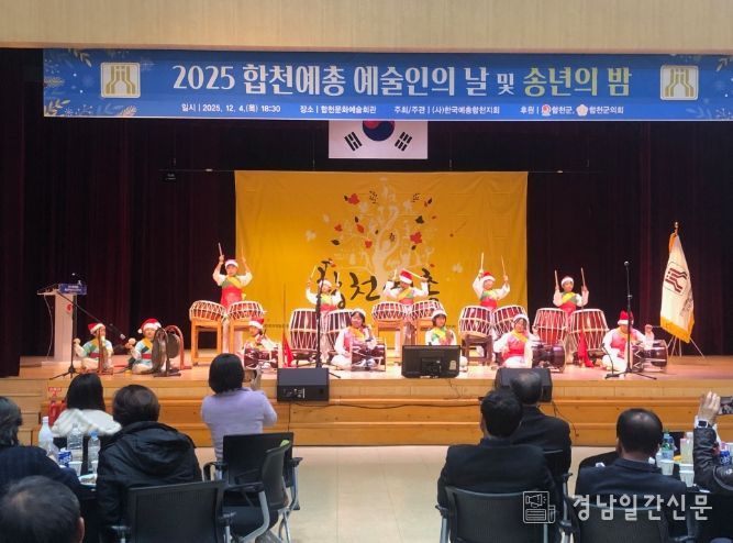 경남일간신문 | (사)한국예총합천지회(지회장 이점용)는 4일 합천문화예술회관 대공연장에서 ‘2025 합천예총 예술인의 날 및 송년의 밤’ 행사를 성황리에 개최했다.