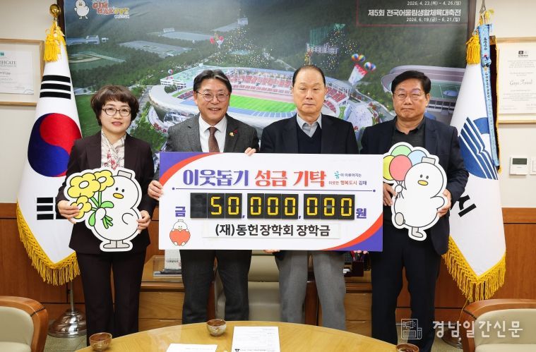 홍태용 김해시장은 “어려운 가정형편으로 학업에 부담을 느끼는 학생들을 위해 따뜻한 나눔을 실천해 주신 동헌장학회에 깊이 감사드린다”며 “학생들에게 큰 희망과 용기가 될 것”이라고 밝혔다.