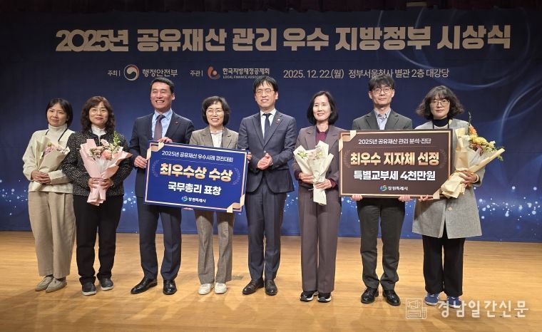 경남일간신문 | 창원특례시는 22일 정부서울청사에서 열린 ‘2025년 공유재산 우수 지자체 시상식(행정안전부 주관)’에서 공유재산 우수사례 경진대회 부문 최우수상(국무총리상)과 공유재산 관리 분석·진단 부문 최우수상을 동시에 수상했다고 밝혔다.