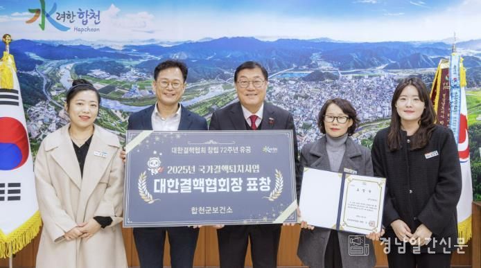 경남일간신문 | 합천군 보건소는 지역사회 결핵 발생률 감소와 결핵 퇴치를 위한 적극적인 사업 추진 성과를 인정받아 대한결핵협회 창립 72주년을 기념하여 ‘2025년 결핵퇴치사업 유공 대한결핵협회 기관상’을 수상했다고 23일 밝혔다.