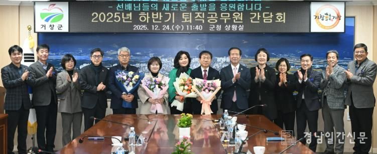 경남일간신문 | 거창군은 지난 24일 군청 상황실에서 퇴직을 앞둔 공무원들의 공직생활의 노고와 헌신에 대한 감사를 전하기 위해 ‘2025년 하반기 퇴직공무원 간담회’를 개최했다.