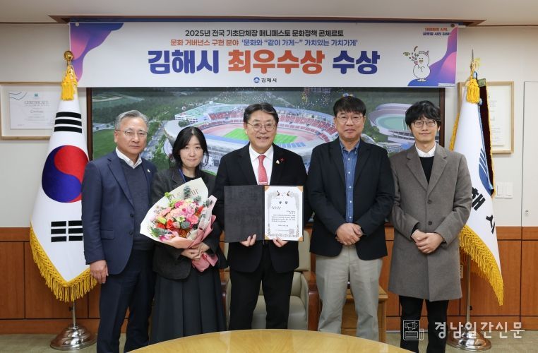 경남일간신문 | 김해시는 지난 23일'2025년 전국 기초단체장 매니페스토 문화정책 콘체르토 대회'에서 문화거버넌스 구현 분야‘최우수상’을 수상했다고 밝혔다.