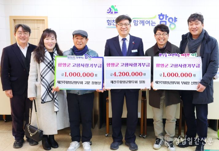 이번 기부는 함양군이 전국 향우들을 대상으로 진행 중인 ‘함양 고향사랑 십시일반 기부 챌린지’의 일환으로 마련됐다.