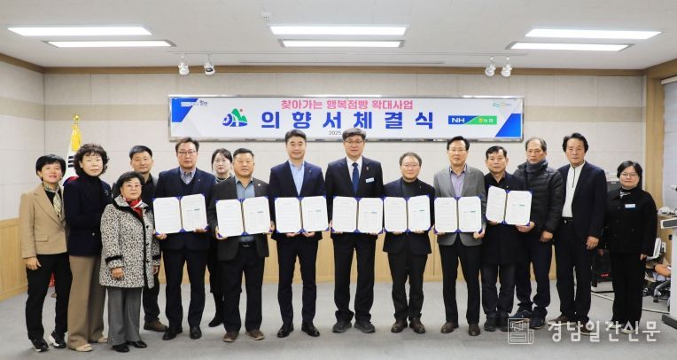 특히, 10월 경상남도의회 지방소멸대응 특별위원회 현장 간담회와 마을 방문을 통해 사업의 지속 가능성과 확산의 필요성에 대한 공감대가 형성됐으며, 이에 따라 군과 지역농협이 ‘행복점빵 확대 사업’을 위한 의향서를 체결하게 됐다.
