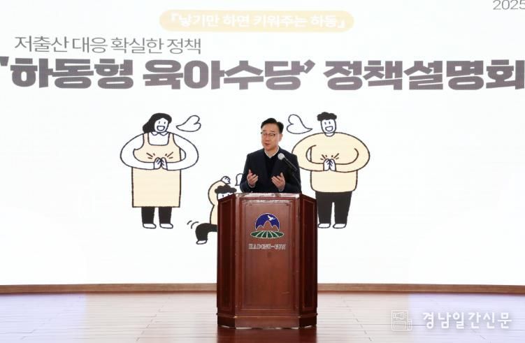‘하동형 육아수당’은 만 7세 미만 아동에게 월 60만 원의 하동사랑상품권을 지급하는 제도로, 2년간의 끈질긴 협의와 노력 끝에 결실을 맺어 올해부터 시행 중이다.