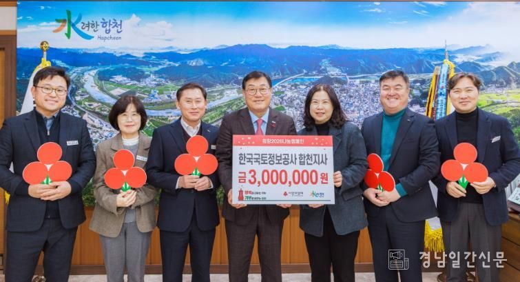 경남일간신문 | 합천군은 8일 한국국토정보공사 합천지사가 합천군청을 방문해 관내 저소득세대를 돕기 위한 이웃돕기 성금 300만원을 지정기탁했다고 밝혔다.