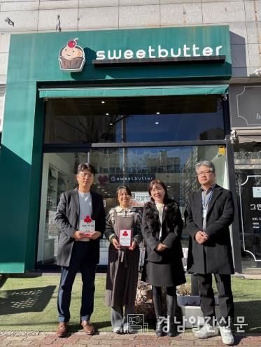 경남일간신문 | (재)김해시복지재단 김해시서부노인종합복지관은 지난 9일, ‘스위트버터’에 착한가게 260호점 현판을 전달했다고 밝혔다.