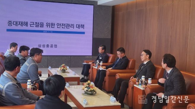 간담회에는 김명주 경남도 경제부지사, 천성봉 도민안전본부장, 이종수 중대재해예방과장과 삼성중공업 남궁금성 조선소장, 서용성 생산본부장 등 관계자 10여 명이 참석했다.