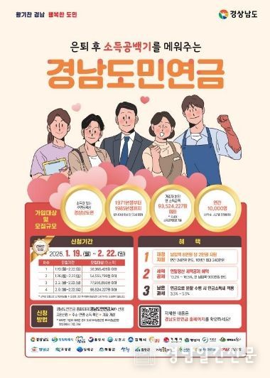 경남일간신문 | 함양군은 군민의 은퇴(60세) 이후 공적연금 수령 전(65세)까지의 소득 공백기를 대비하고 안정적인 노후 준비를 지원하기 위해 '2026년 경남도민연금 지원사업'을 추진하고 가입자를 모집한다고 밝혔다.