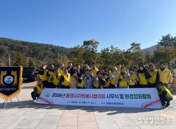 경남일간신문 | 통영시자원봉사협의회는 지난 16일 산양스포츠파크 일원에서 2026년 시무식과 함께 환경정화활동을 진행하며 새해 공식 활동의 막을 올렸다.