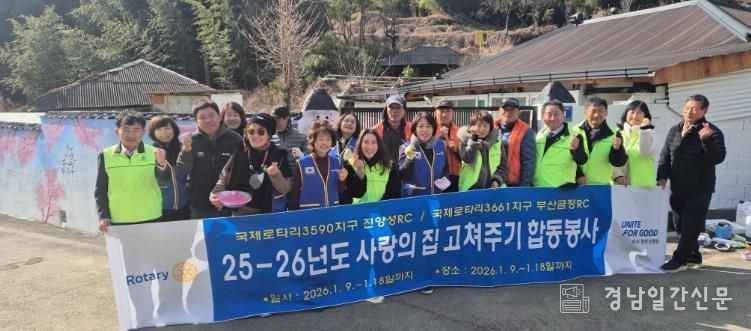 경남일간신문 | 국제로타리 3590지구 진양성로타리클럽은 지난 1월 12일부터 20일까지 9일간 이반성면 관내 취약계층 독거노인을 대상으로 주거환경 개선을 위한 ‘사랑의 집고쳐주기’ 봉사활동을 실시했다.