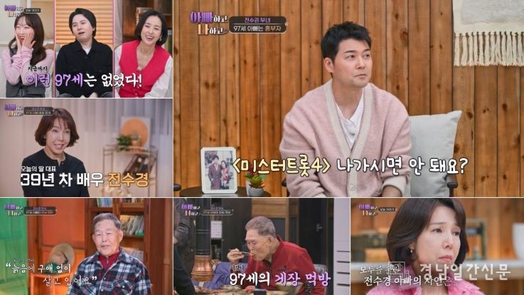 경남일간신문 | TV CHOSUN '아빠하고 나하고 시즌3'에 39년 차 배우이자 ‘뮤지컬계 대모’ 전수경이 새로운 딸 대표로 등판, 나이 의혹을 부를 만큼 건강한 97세 아버지와 함께하는 일상을 공개한다.
