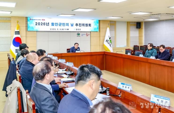 경남일간신문 | 함안군은 2026년 함안군민의 날 행사를 성공적으로 개최하기 위해 지난 4일 군청 별관 3층 중회의실에서 조근제 함안군수를 위원장으로 한 ‘2026년 함안군민의 날 추진위원회’ 회의를 열었다고 밝혔다.