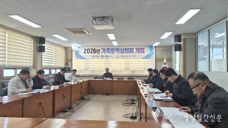 경남일간신문 | 경남 밀양시는 4일 농업기술센터 소회의실에서 ‘2026년도 가축방역심의회’를 개최하고, 가축 질병 없는 ‘청정 밀양’을 지키기 위한 방역 대책을 심의·의결했다.