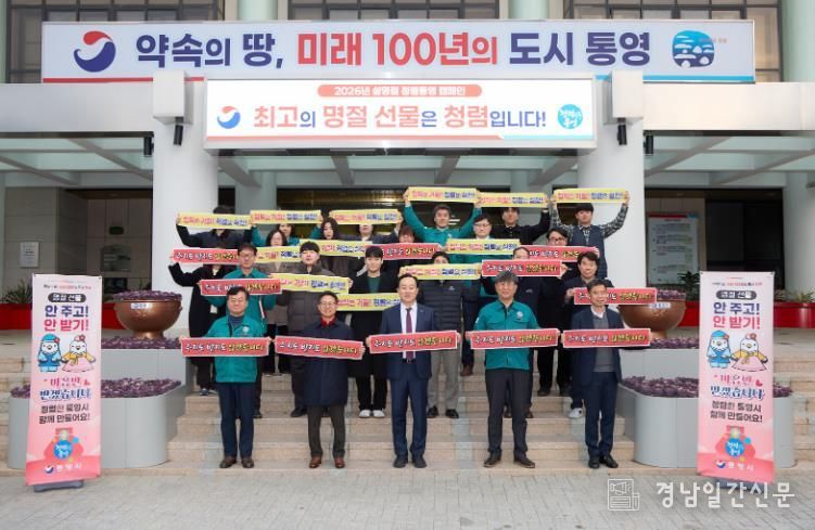 경남일간신문 | 통영시는 설 명절을 앞두고 공직사회의 청렴 의식을 확산하고 공직자 행동강령 준수를 당부하기 위해 지난 10일 1청사 현관에서‘2026년 설명절 대비 청렴통영 캠페인’을 실시했다.
