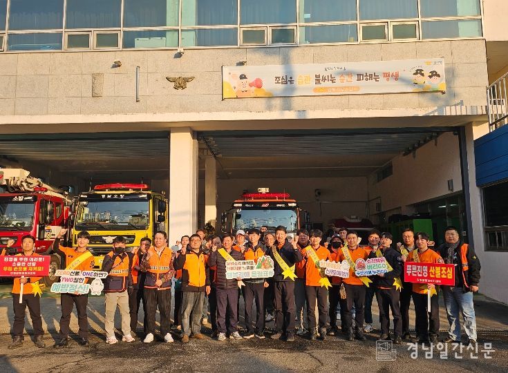 이번 캠페인에는 진영읍 119안전센터 소방대원과 의용소방대원 30여명이 참여해 시민들을 대상으로 산불 예방 전단 홍보물을 배부하고, 불법 소각 금지와 성묘 시 실화 주의 사항 등을 집중 안내했다.