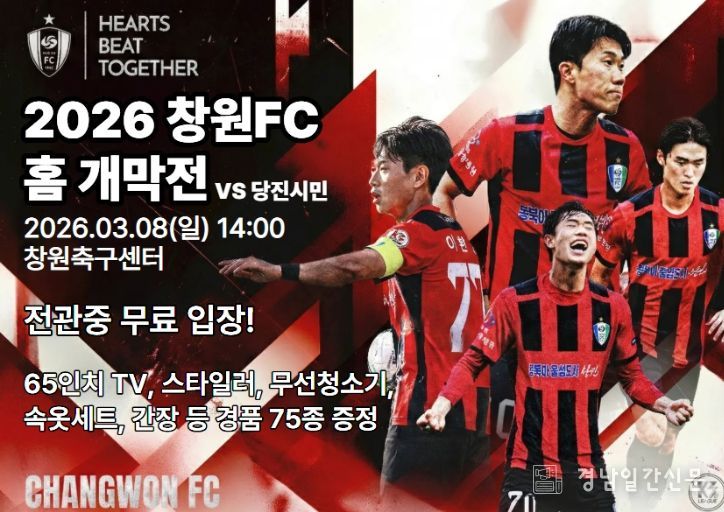 경남일간신문 | K3리그 창원FC가 오는 3월 8일 오후 2시 창원축구센터에서 당진시민축구단을 상대로 2026시즌 홈 개막전을 치른다.