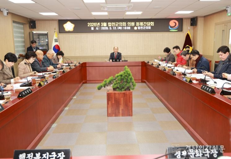 경남일간신문 | 합천군의회는 12일 합천군의회 간담회장에서 2026년 3월 합천군의회 의원 정례간담회를 개최했다고 전했다.