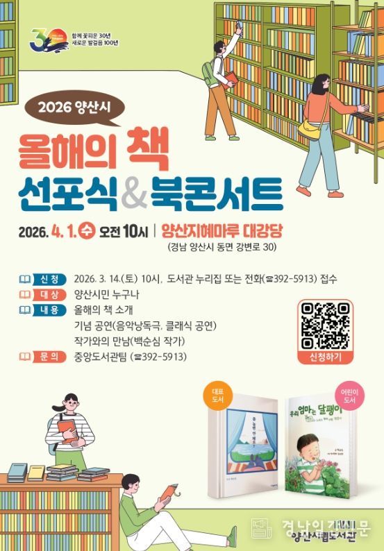 경남일간신문 | 양산시립도서관은 오는 4월 1일 수요일 오전 10시, 지혜마루 대강당에서‘2026년 올해의 책 선포식 및 북콘서트’를 개최한다.