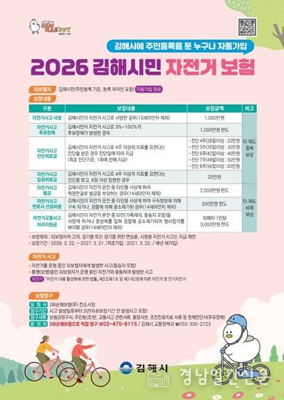 경남일간신문 | 김해시는 시민 자전거 사고 상해 보장 지원을 위해 ‘김해시민 자전거보험’에 가입했다고 17일 밝혔다.