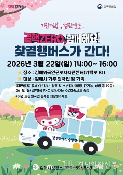 경남일간신문 | 김해시는 제16회 결핵예방의 날(3월 24일)을 맞아 오는 22일 오후 2시부터 4시까지 김해외국인근로자지원센터에서 '찾아가는 외국인 무료 결핵검진'을 실시한다고 18일 밝혔다.
