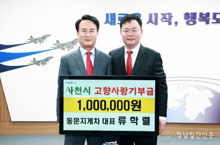 사천시는 동문지게차 류학렬 대표가 고향사랑기부제를 통해 지속적인 기부를 이어오며 ‘화제의 인물’로 주목받고 있다고 18일 밝혔다.