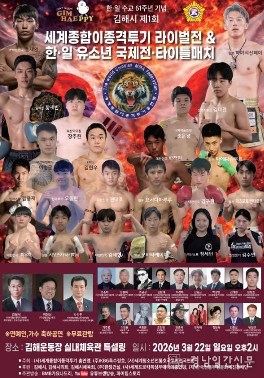 시 관계자는 “이번 대회는 종합격투기 스포츠 발전과 함께 청소년 무예 인재 육성, 한·일 스포츠 교류 확대에 의미 있는 계기가 될 것”이라며 “종합격투기가 시민들이 함께 즐길 수 있는 스포츠 문화로 자리매김하길 기대한다”고 말했다.