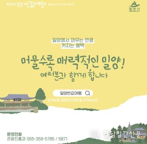 경남일간신문 | 경남 밀양시는 관광객의 여행 부담을 덜고 지역 상권에 활력을 더하기 위해 2026년 지역사랑 휴가지원사업인 ‘반하다밀양 반값여행’을 추진한다.