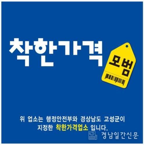 경남일간신문 | 고성군은 지역 물가 안정과 서민경제 부담 완화에 기여하고 있는 ‘착한가격업소’를 4월 17일까지 신규모집 한다고 밝혔다.