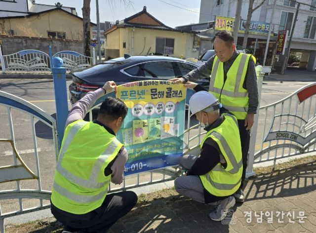 이날 참여자들은 남지초등학교에서 동포초등학교 구간을 이동하며 통학로 주변에 설치된 불법 현수막과 벽보 등 유동 광고물을 직접 정비했다. 또한 학교 주변 불법·유해 광고물 근절의 필요성과 올바른 광고 문화 정착을 위한 홍보 활동도 펼쳤다.