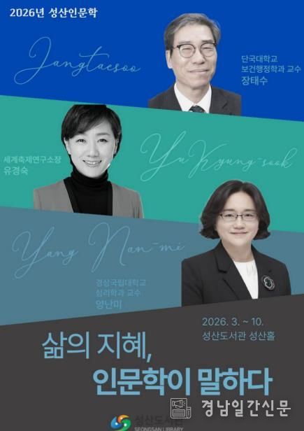 경남일간신문 | 창원특례시 성산도서관은 시민의 인문 정신 함양과 지역의 인문 진흥을 위해 '삶의 지혜, 인문학이 말하다'라는 주제로 2026년 성산인문학을 운영한다.