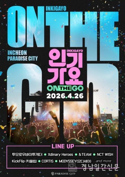 오는 4월 26일 인천 파라다이스시티에서 개최되는 ‘인기가요 ON THE GO’는 SBS 대표 음악 프로그램 ‘인기가요’의 스페셜 공연 프로젝트로, SBS 등촌동 공개홀 생방송 현장의 열기를 그대로 구현하면서 K-POP 팬들이 있는 곳이라면 어디든 직접 찾아가는 콘셉트로 기획됐다. 기존 스튜디오 중심의 음악 방송을 넘어, 보다 확장된 공간에서 팬들과 아티스트가 함께 호흡하는 현장형 공연으로 새로운 관람 경험을 선사할 예정이다.