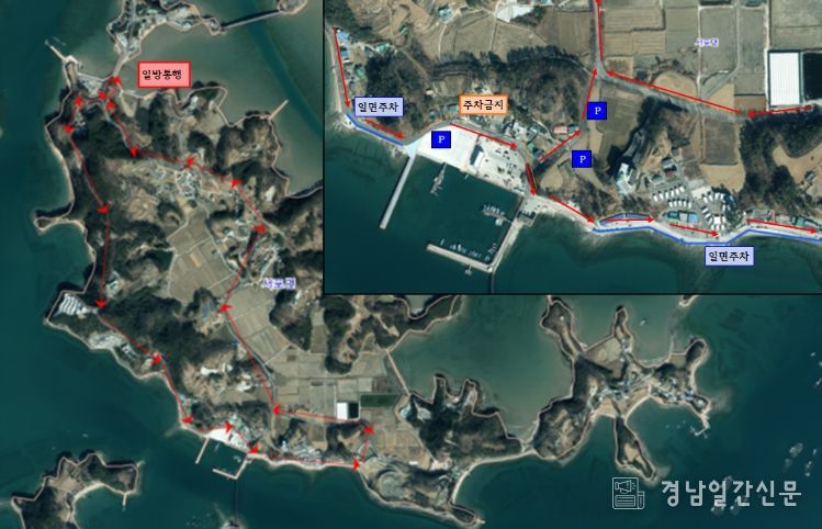 낙지포항으로 진입하는 주요 진입로 두 곳(새남쪽나루횟집, 한일횟집 인근)은 차량 진입이 제한되며, 비토삼거리에서 낙지포항까지 구간은 일방통행으로 지정·운영된다.