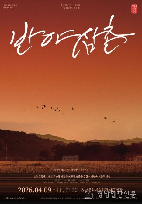 경남일간신문 | 경남도립극단이 4월 9일부터 11일까지 경남문화예술회관 대공연장에서 2026년 첫 정기공연 연극 ‘반야 삼촌’을 선보인다.