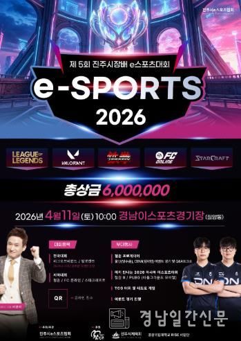 경남일간신문 | 진주시는 오는 11일 경상국립대학교 칠암캠퍼스 100주년 기념관에 있는 경남 이(e)스포츠 상설경기장에서 ‘2026 진주 아마추어 e스포츠 대회’를 개최한다고 밝혔다.