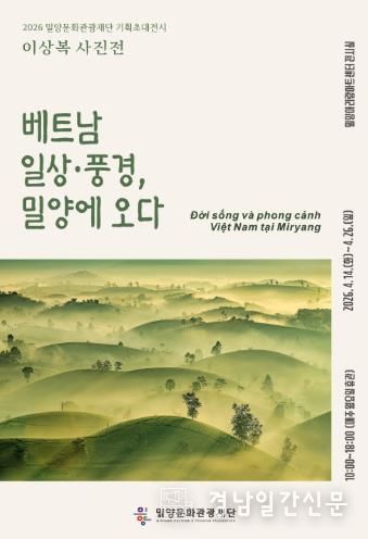 경남일간신문 | 밀양문화관광재단은 오는 14일부터 26일까지 밀양아리랑아트센터 전시실에서 2026년 기획초대전시 이상복 사진전 ‘베트남 일상·풍경, 밀양에 오다’를 개최한다.