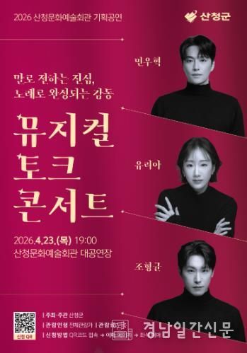 경남일간신문 | 산청군은 오는 23일 문화예술회관 대공연장에서 ‘민우혁×유리아×조형균 뮤지컬 토크 콘서트’를 개최한다고 10일 밝혔다.