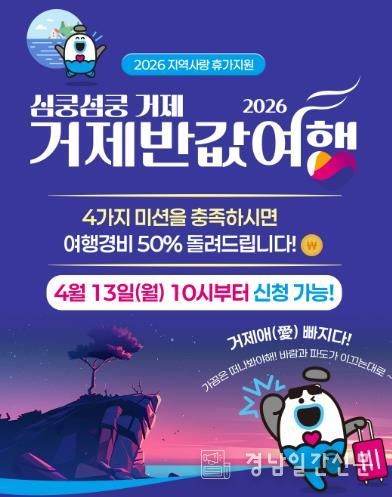 경남일간신문 | 거제시는 관광객 유치 확대와 지역경제 활성화를 위해‘2026년 심쿵섬쿵 거제 반값여행’ 시범사업을 추진한다고 밝혔다.