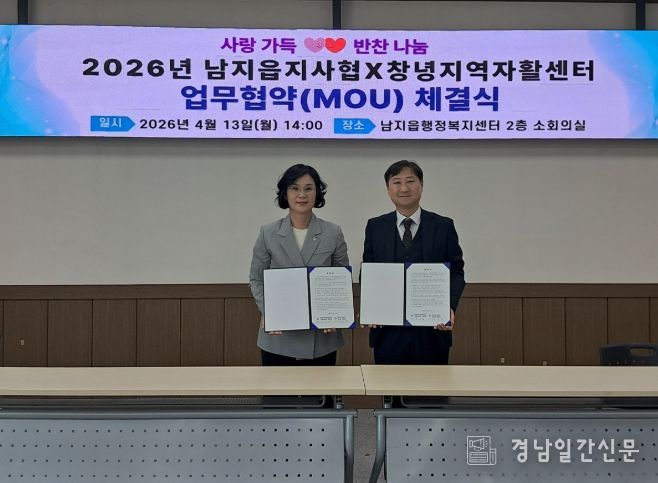 경남일간신문 | 창녕군 남지읍 지역사회보장협의체(공공위원장 김선경)는 지난 13일 창녕지역자활센터와 ‘사랑가득 반찬나눔’ 사업 추진을 위한 업무협약(MOU)을 체결했다.