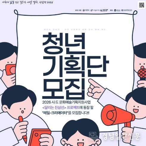 경남일간신문 | 사천시는 “2026 시·도 문화예술기획지원사업”의 일환으로 진행되는 지역특화 문화예술 콘텐츠 ‘달리는 진삼선’ 프로젝트를 이끌어갈 청년 기획단 ‘레일-크리에이터’를 모집한다.