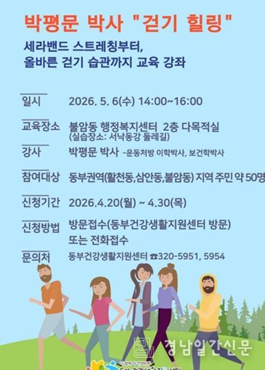 경남일간신문 | 김해시 동부건강생활지원센터는 오는 5월 6일 시민들의 생활 속 운동 실천율을 높이고 올바른 걷기 지식을 보급하기 위해 ‘세라밴드 스트레칭부터 올바른 걷기 습관까지’ 교육 강좌를 개최한다고 21일 밝혔다.