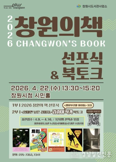 경남일간신문 | 창원특례시 도서관사업소는 오는 4월 22일 오후 1시 30분, 창원시청 시민홀에서 시민들과 함께하는 ‘2026 창원의 책’ 선포식을 개최한다고 밝혔다.