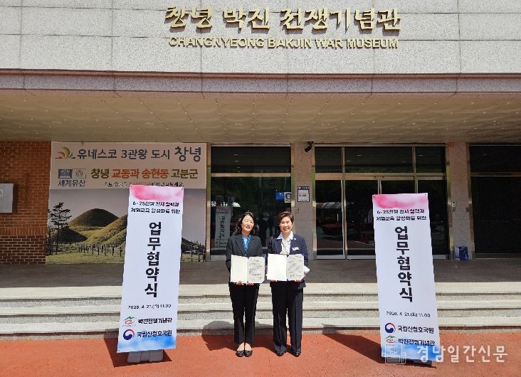 경남일간신문 | 창녕군 박진전쟁기념관은 21일, 국립산청호국원(원장 김경나)과 업무협약을 체결하고, 6‧25전쟁의 역사적 가치 계승과 호국보훈 문화 확산을 위한 전시 및 교육 협력 체계를 구축했다.